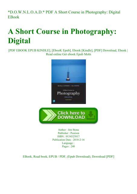 Free Download A Short Course In Digital Photography (2nd Ebook Epub By Click Button. A Short Course In Digital Photography (2nd Ebook it’s easy to recommend a new book category such as Novel, journal, comic, magazin, ect. You see it and you just know that the designer is also an author and understands the challenges involved with having a good book. You can easy klick for detailing book and you can read it online, even you can download it
